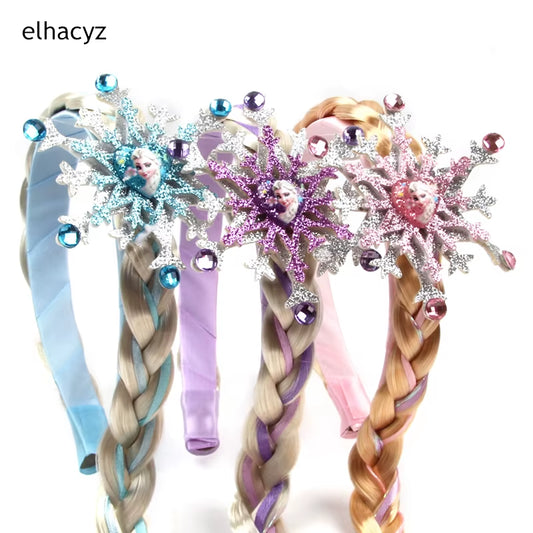 Frozen Princess Elsa Headband Snowflake Tiara Wig Braid Crown Hairband Cosplay Girls Birthday Party Kids DIY Hair Accessories