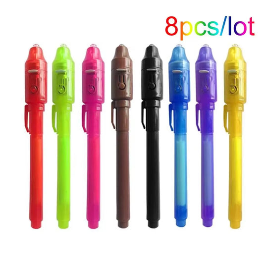 8Pcs/Lot 2 in 1 Magic Light Pen Invisible Ink Pen,Secrect Message Pens,For Drawing Fun Activity Kids Party Favors Gift