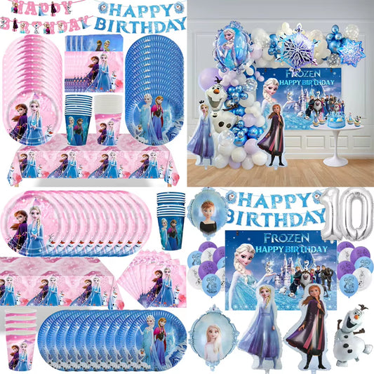 Frozen Birthday Party Decoration Set Anna Elsa Olaf Snowflake Banner Backdrop Balloons Kit Foil Garland Arch Balloon Baby Shower