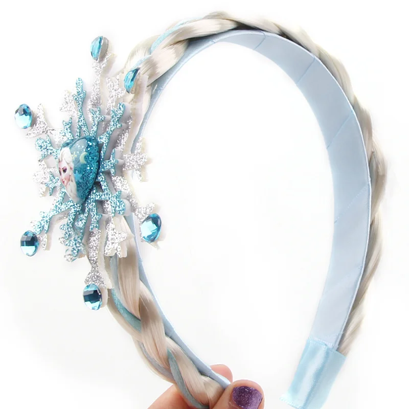 Frozen Princess Elsa Headband Snowflake Tiara Wig Braid Crown Hairband Cosplay Girls Birthday Party Kids DIY Hair Accessories
